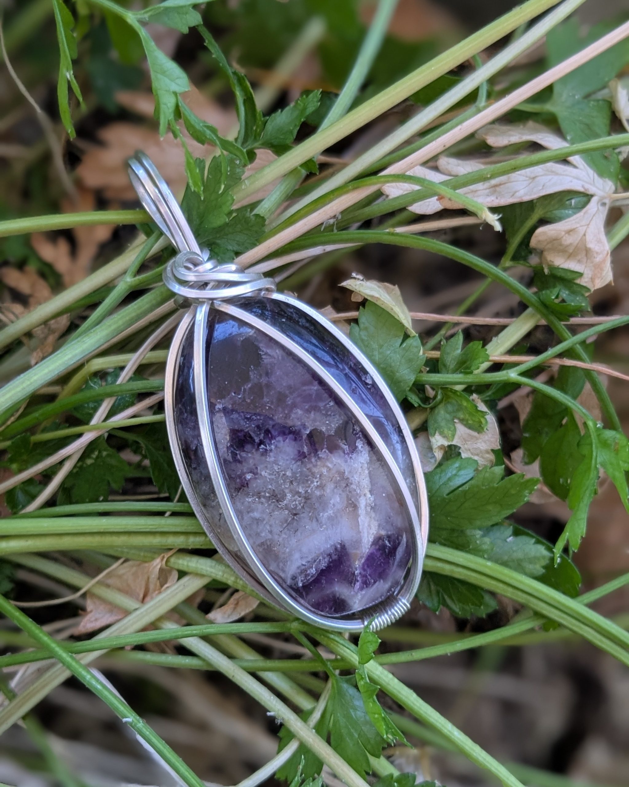 L’Améthyste qui orne ce pendentif en Argent vient d’Auvergne, en France. C’est une pierre naturelle, qui n’a subi aucun traitement.